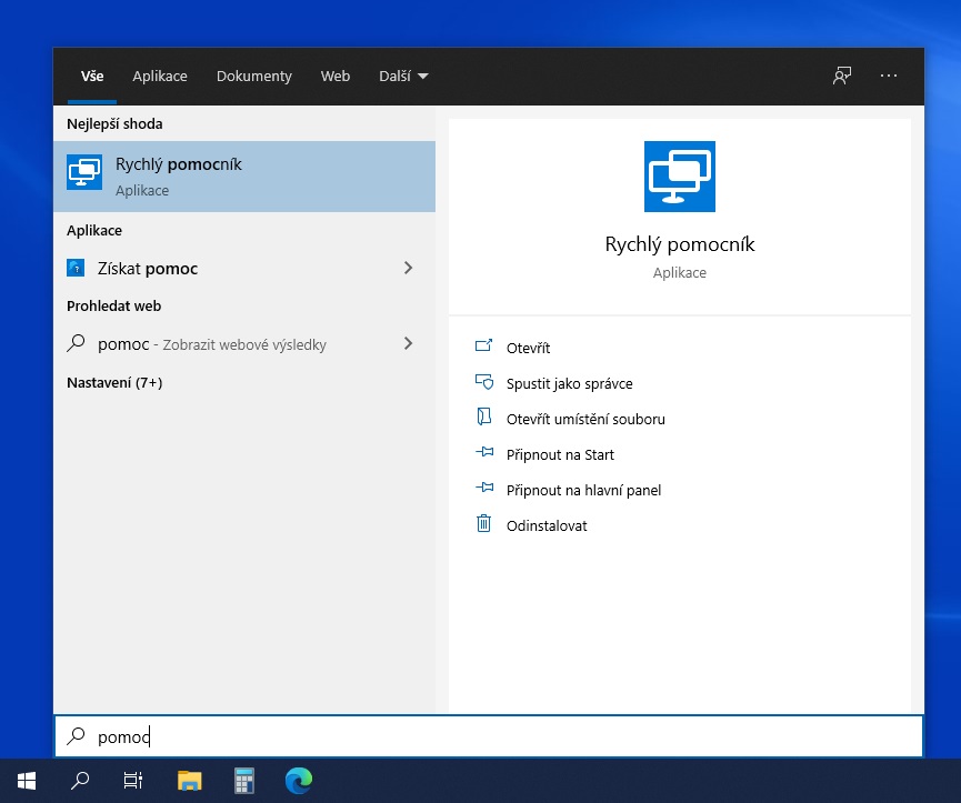 PC nám vyhledá aplikaci "Rychlý pomocník", kterou otevřeme.